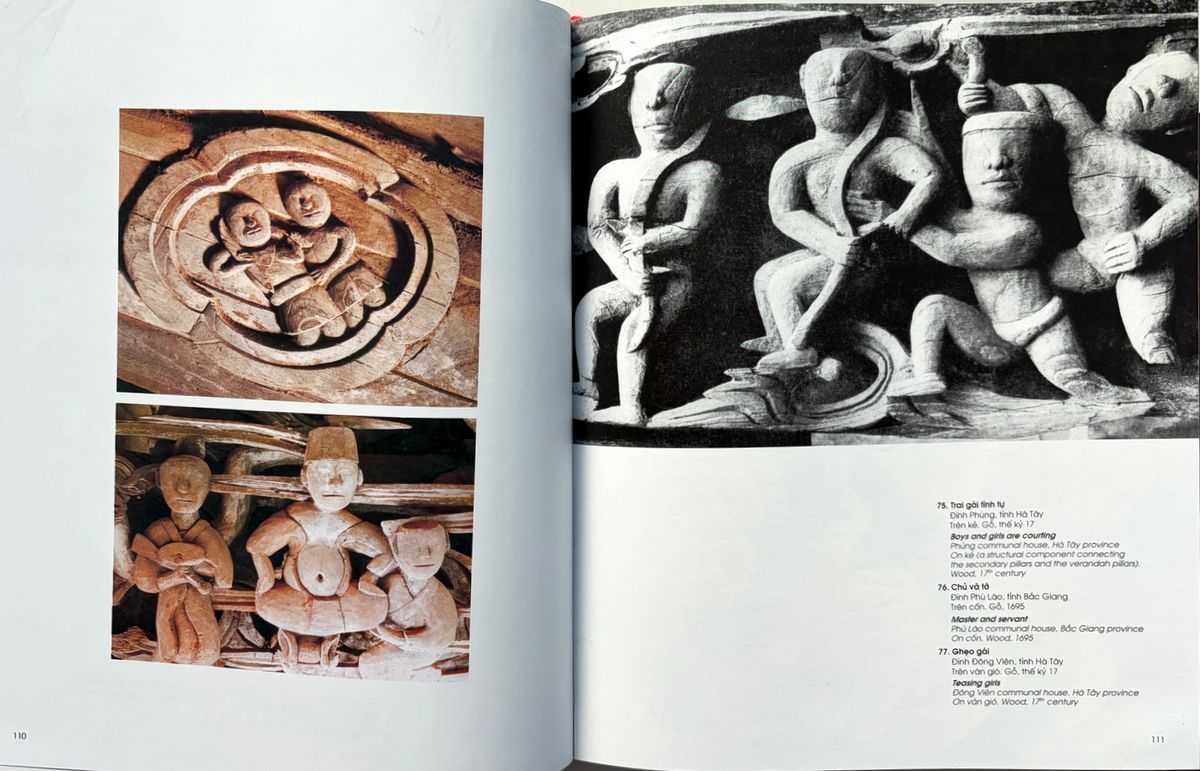 2部に分かれており、1.リ・チャン朝時代の彫刻における人物像、2.1620世紀初頭の彫刻における人物像。この時代の彫刻は次の3章に分かれる;建築における人物像、独立した浅浮き彫りの人物像、石の浅浮き彫りの人物像。各省では写真・イラストが年代順に掲載されている。大杼が宗教的・社会的な活動に参加する様子が描かれており、人間の本質や時代とともに変化する特徴を捉えている。