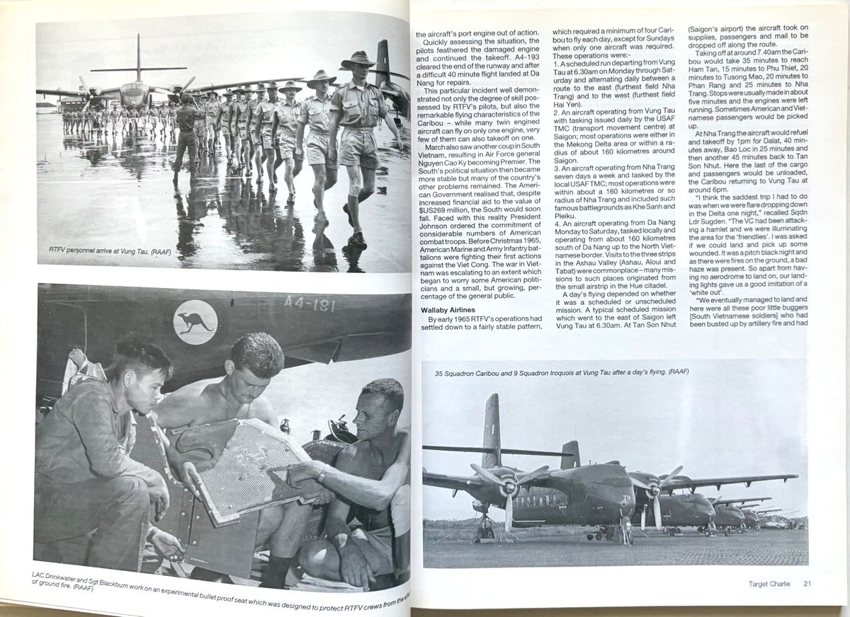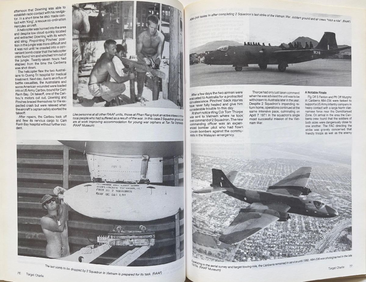 オーストラリア軍のベトナム航空戦写真集。最初にオーストラリアを中心としてベトナム戦争年表、南ベトナム省区分地図、それに特に空軍の駐留地となったブンタウの位置するフォクトゥイ省地図がある。 その後オーストラリア空軍第2、第9飛行中隊、同空軍FACパイロット、F-4ファントム・パイロット等の章がある。 付録も豊富で、航空機の規格、南ベトナムで活躍したオーストラリア空軍機一覧や破壊された航空機りすと、英連邦賞受賞者一覧等も。 写真は全部白黒だが、オーストラリアに限ってのものであり貴重。入手難。 210x275o, 132pp, SC, 英語