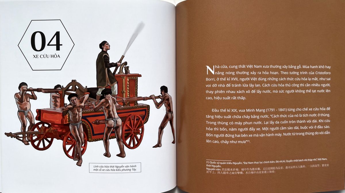 本書は20世紀以前のS字型地形に暮らしていたキン族とチャム族が生活に用いていた、輸入されたもの、自作したものも含めた30の優れた技術を紹介。内容は古文書や古書を調査したもの。今後、これらの技術を復元・実験し、その有効性を明らかにするプロジェクトが数多く生まれることを期待している。 本書が国民の誇りを喚起し、前向きなインスピレーションの源となり、現代の若い読者の心に科学技術革新への情熱を燃え上がらせることを期待、としている。 すべてがカラーで鮮やかなイラストを多数用い、科学的かつ分かりやすく解説。全V省は、生産における技術と革新、建設の技術と革新、海洋工学と発明、生活に役立つ技術と発明、軍事の技術と発明。巻末に参考資料の一覧。 205x205o, 127pp, SC, ヴェトナム語