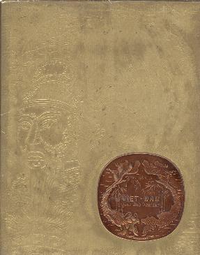 SB396 VietーNam Past and Present, Thai Van Kiem, Commercial Transworld Editions, Saigon 1957;   50年代にサイゴンで出版されたヴェトナム全般の紹介書。国土、人々、歴史上の重要な日々、文明、政治・行政と司法機関、経済と財政、農業、社会と文化、進み行くヴェトナム、ヴェトナムと自由世界からの援助等の項目がある。写真(イラストも含む)が実に豊富。文学ではキム・ヴァン・キェウを22頁にわたって紹介。ヴェトナム共和国の1956年制定憲法全文や折畳みで各軍の肩章がカラーで示されたり資料としての価値もある。「北部からの難民」の項やミス・ヴェトナムの写真も。参考文献は全て54年以前のもの。50年代の南ヴェトナムの全てがこの1冊に!215X265, 418pp HC (表紙にメタルプレートがはめ込まれた特殊仕様), 英語。 USED 綴じが弱く、外れている頁が目立つが欠損はない(打たれている頁数で確認可)。